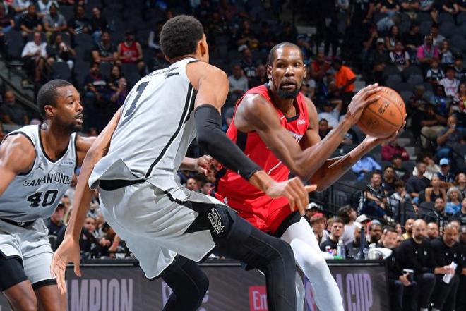 易边再战,小史密斯中距离反超,马刺内外开花一波8-0建立7分领先,杜兰特2分止血,巴恩斯3分再中,杜兰特暴扣回应,马刺一波6-0将领先扩大到两位数,伊森3分命中,尚帕尼3分回应,随后两队围绕10分分差展开拉锯战,节末亚当斯2+1,杜兰特上篮也有,加上申京3分命中,三节战罢火箭82-86将分差追至4分。